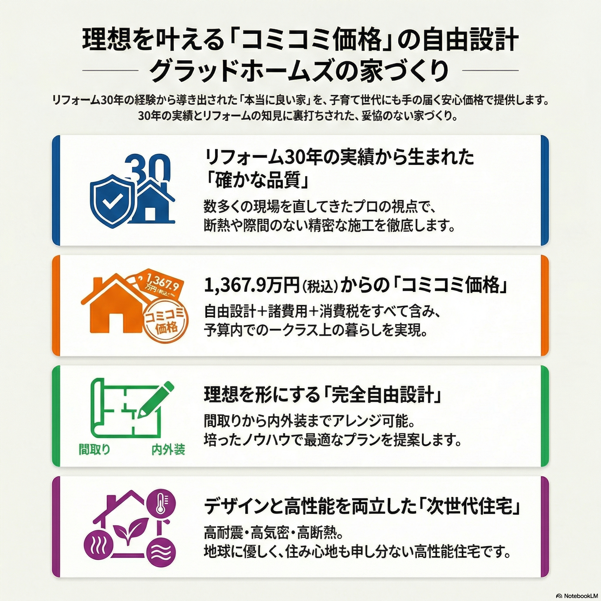 コミコミ価格のグラッドホームズなら、同じご予算で一クラス上の暮らしが手に入ります。